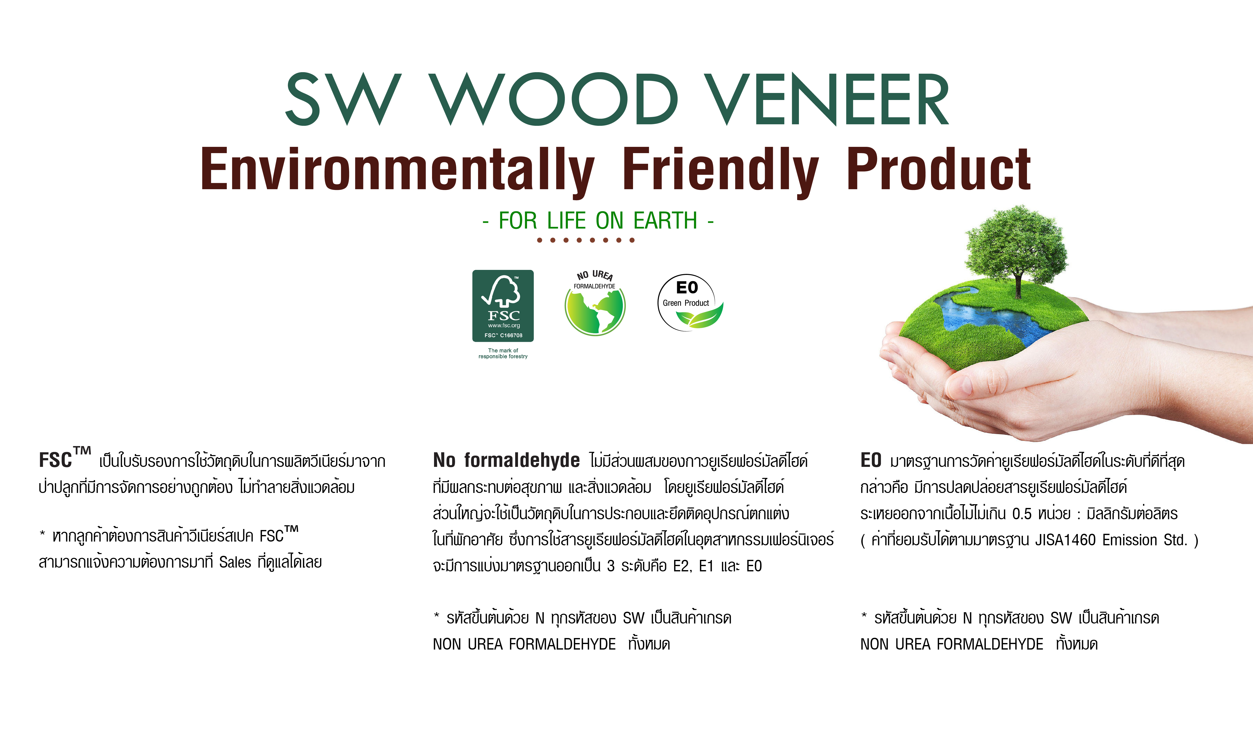 ไม้วีเนียร์ คัดสรรวีเนียร์คุณภาพจากทุกทวีปทั่วโลก โดยผลิตจากแหล่งป่าปลูกธรรมชาติที่ส่งเสริมให้มีการปลูก ต้นไม้ทดแทนหมุนเวียน และจัดการทรัพยากรอย่างเป็นระบบสู่งานออกแบบภายในที่ผสมผสานความเป็น ธรรมชาติเข้ากับความทันสมัยได้อย่างลงตัว เพื่อตอบสนองจินตนาการอันไร้ขีดจำกัด
